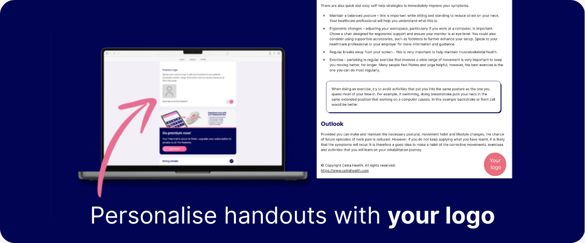 Designed for physiotherapists, osteopaths, and chiropractors, Cetra Health provides your team with medically accurate, peer-reviewed handouts that improve patient understanding and support better compliance.
